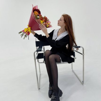 Авторский букет “Окно в сад”: пионовидная лилия, кружевная гвоздика и стойкая альстромерия