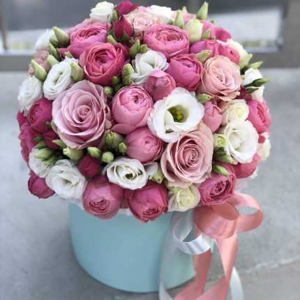 Большой букет с французскими розами, пион кустовой розой и гортензией