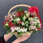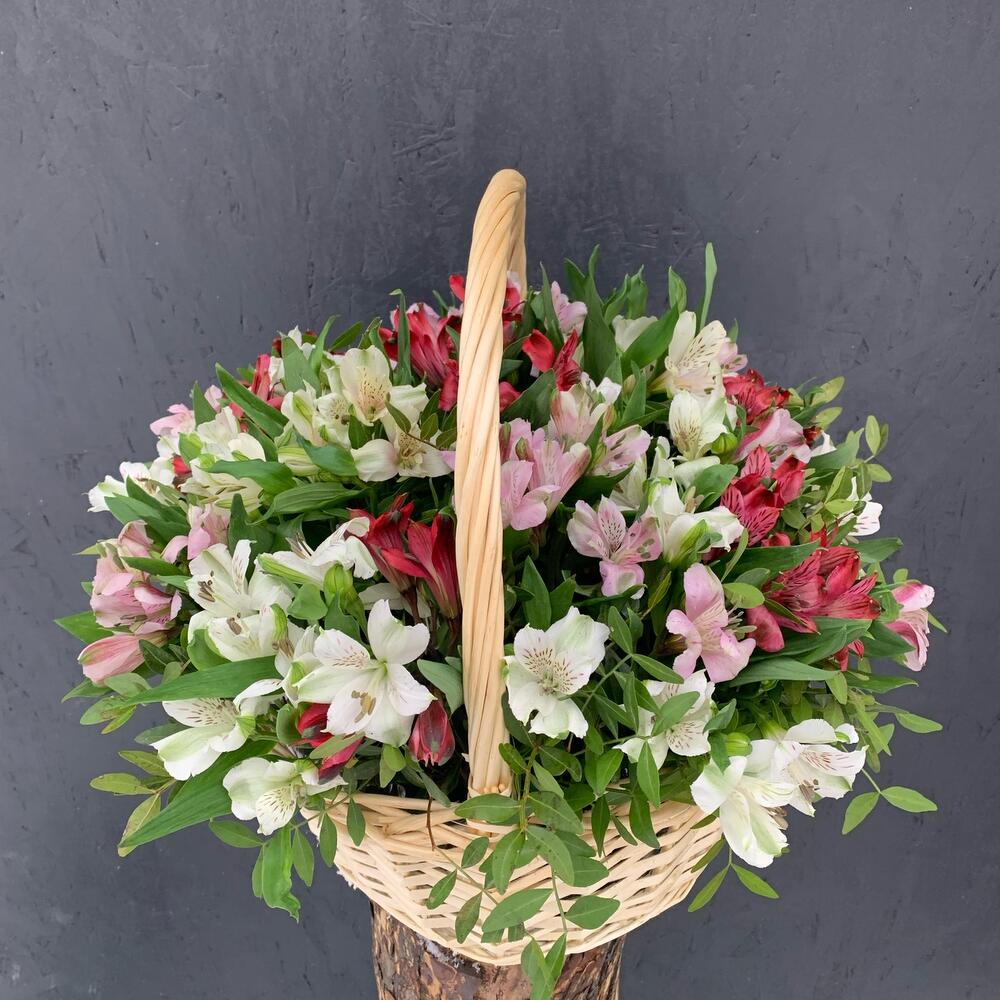 Альстромерия – 17 шт.Зелень – 10 шт.Оазис – 1 шт.Корзина плетеная – 1 шт.