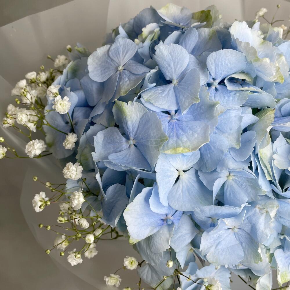 Гортензия верена блю – 1 шт.Гипсофила – 2 шт.Упаковка дизайнерская – 1 шт.