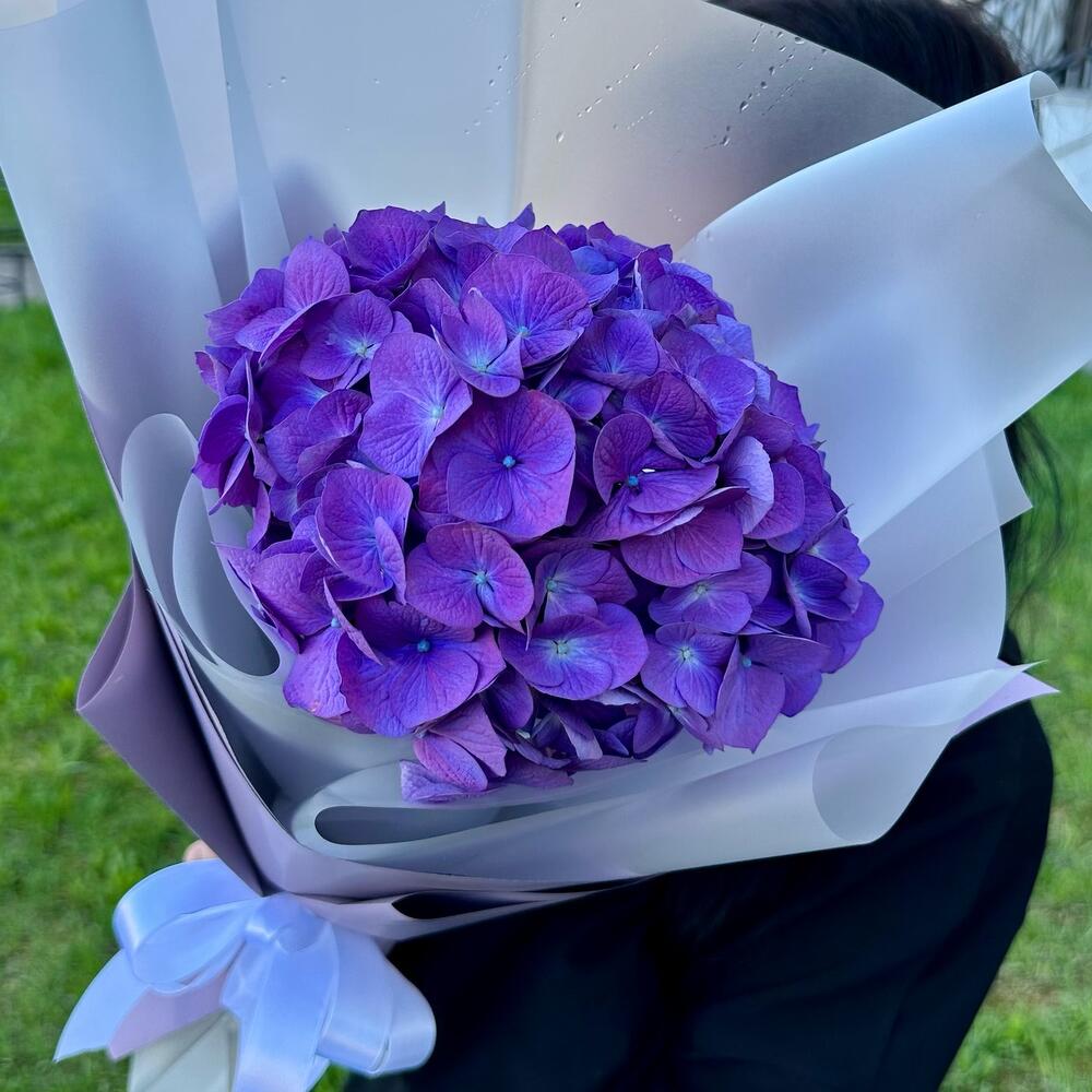 Букет комплимент из фиолетовой гортензии