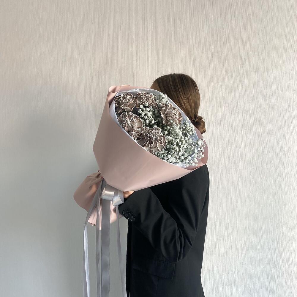 Букет из гипсофилы и диантусов