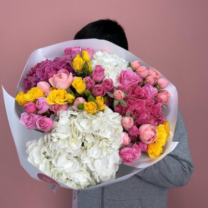 Гвоздики, Кустовые розы, Пионовидные розы, Розы