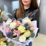 Небесно-розовый букет с экзотическим эрингиумом