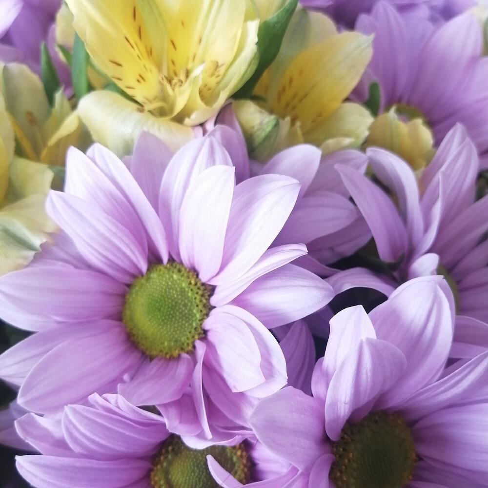 Альстромерия – 4 шт.Хризантема кустовая – 3 шт.Упаковка – 1 шт.