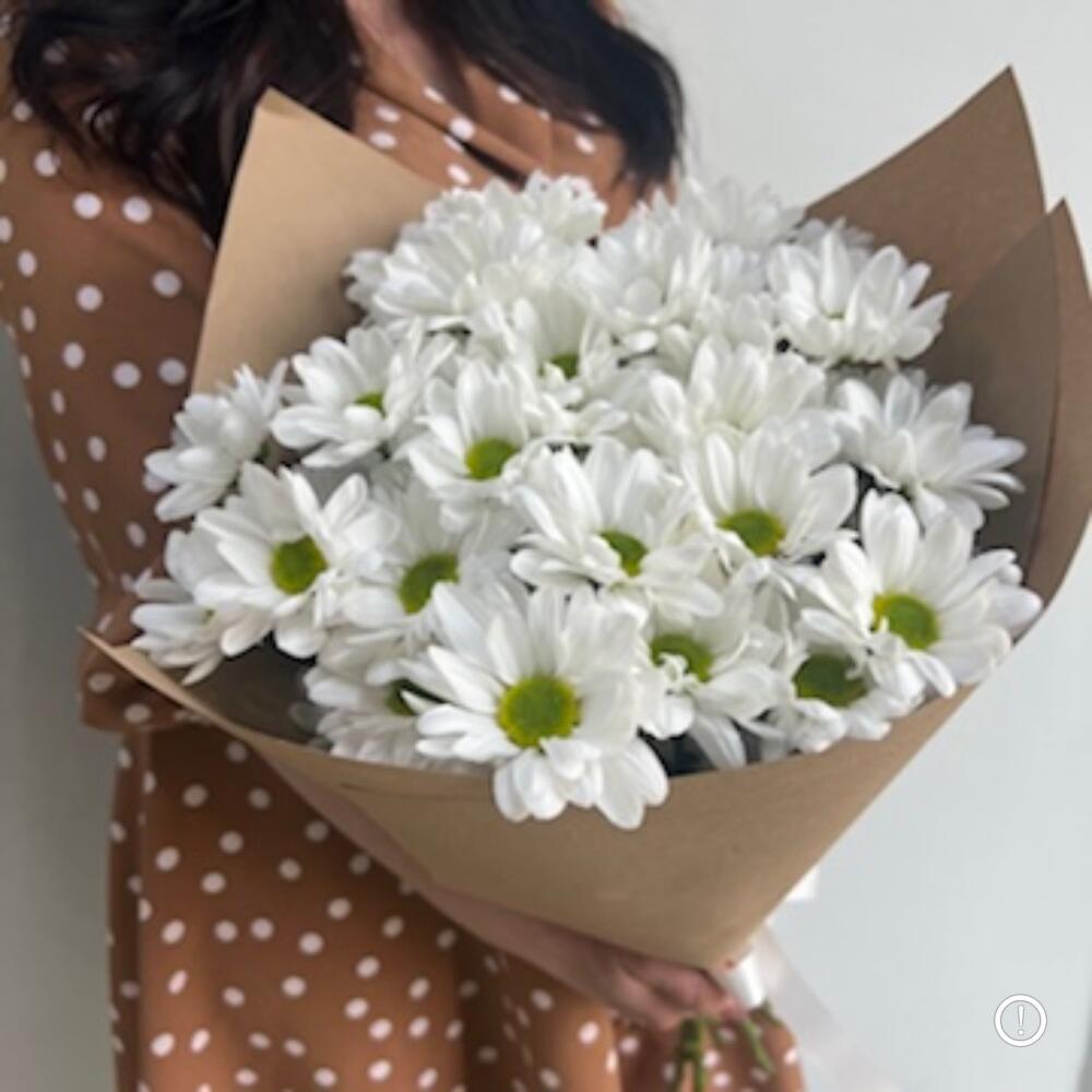 Лента – 1 шт.Хризантема кустовая – 7 шт.Крафт упаковка – 2 шт.