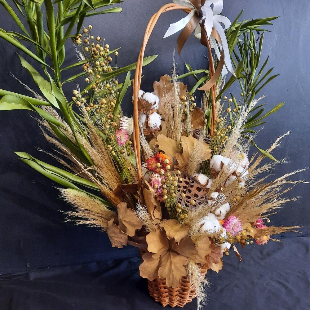 Интерьерная композиция из сухоцветов в плетёной корзине