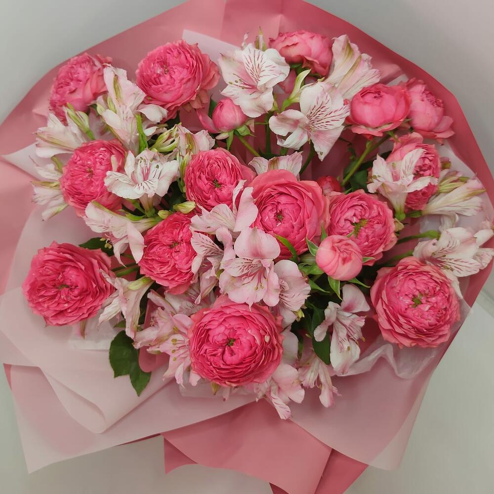 Букет из Роз пионовидных кустовых и 7 Альстромерий