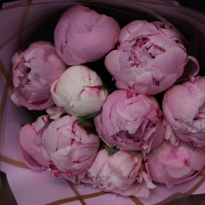 Лента атласная – 2 шт.Пион Сара Бернар – 11 шт.Пленка матовая – 3 шт.