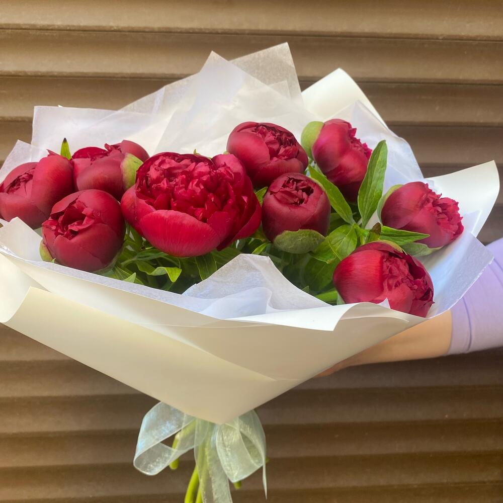 Букет из насыщенных красных пионов внесёт в вашу жизнь ярких красок, которых сейчас не хватает