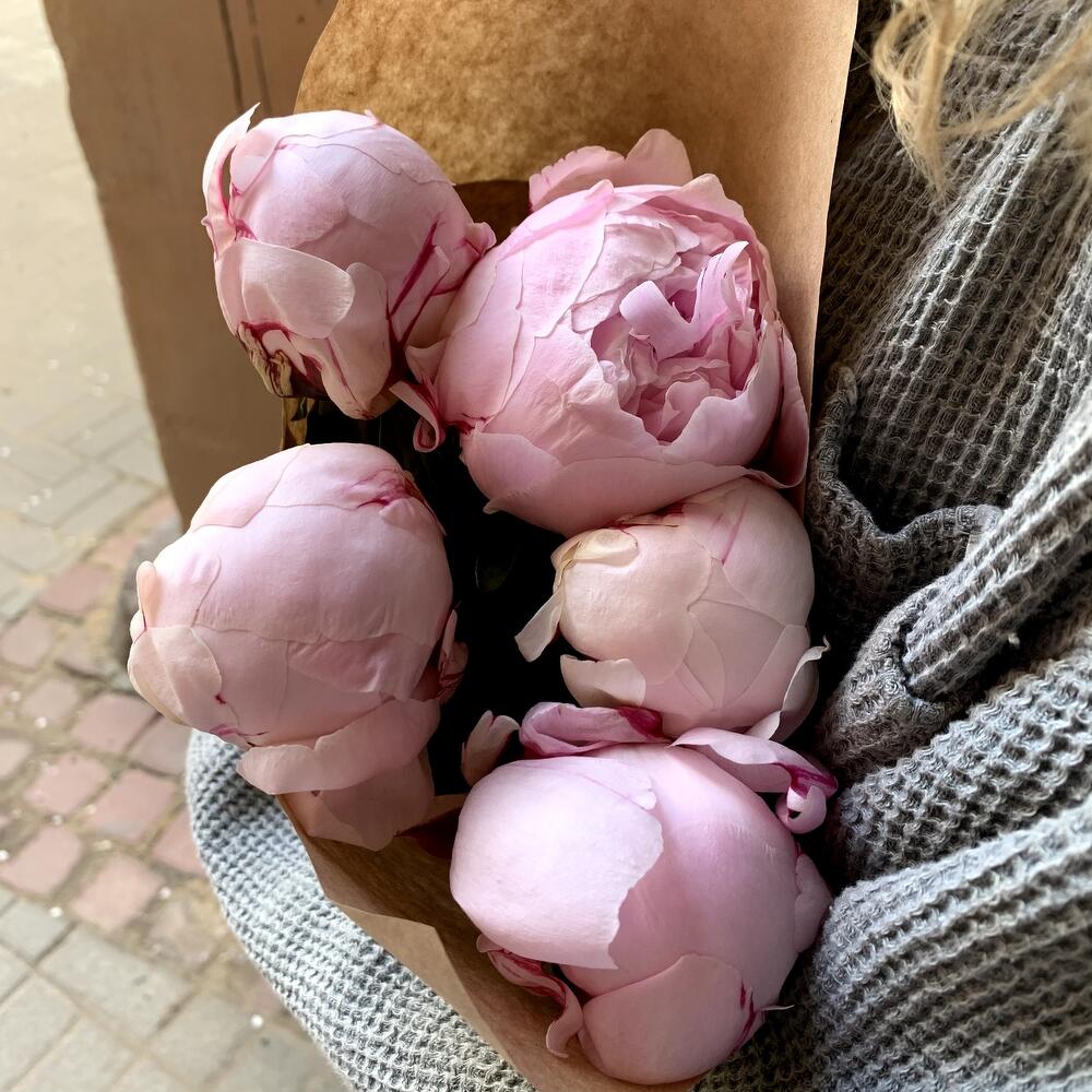 Крафтовая упаковка – 1 шт.Пион розовый – 5 шт.