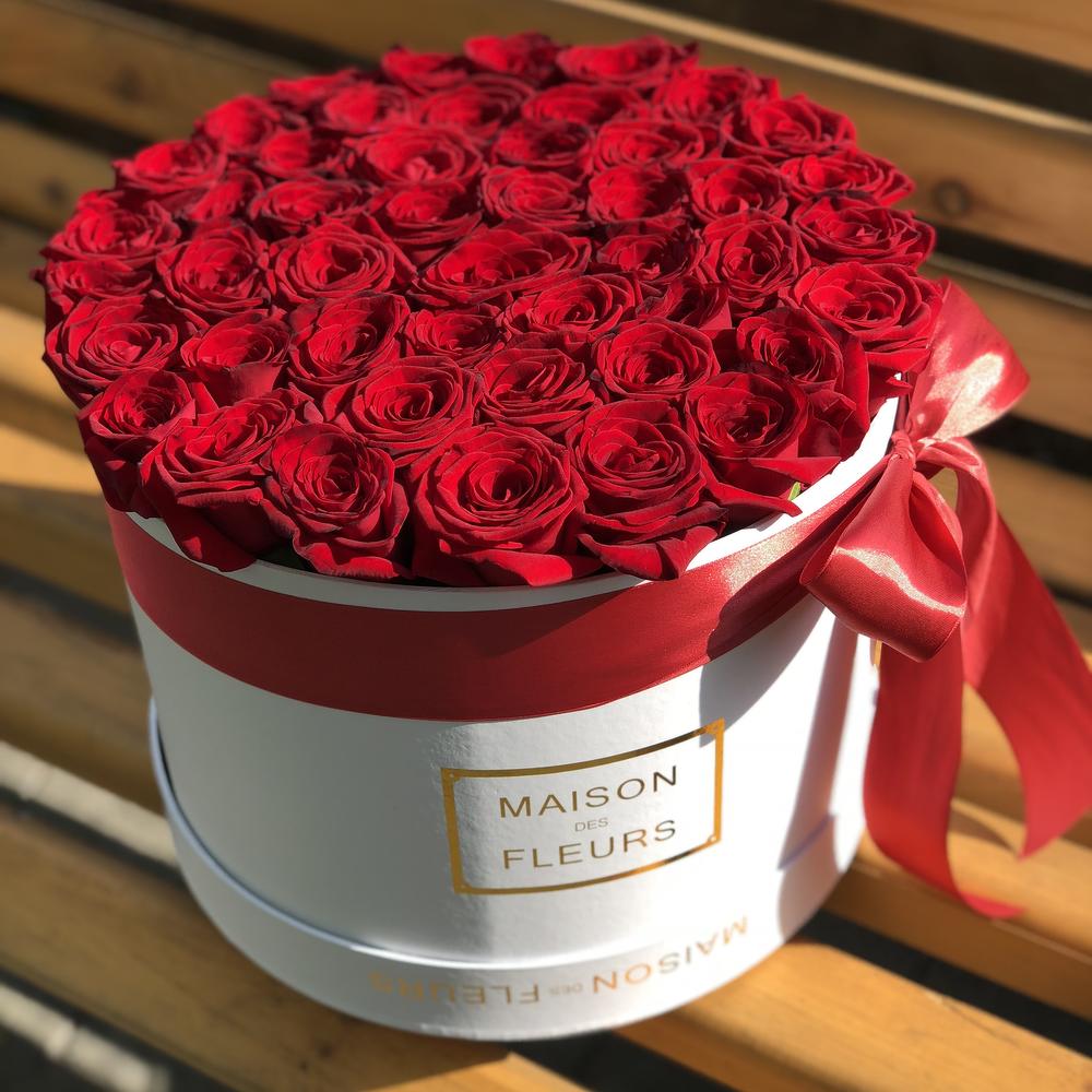 45 Красных роз в фирменной белой Коробке