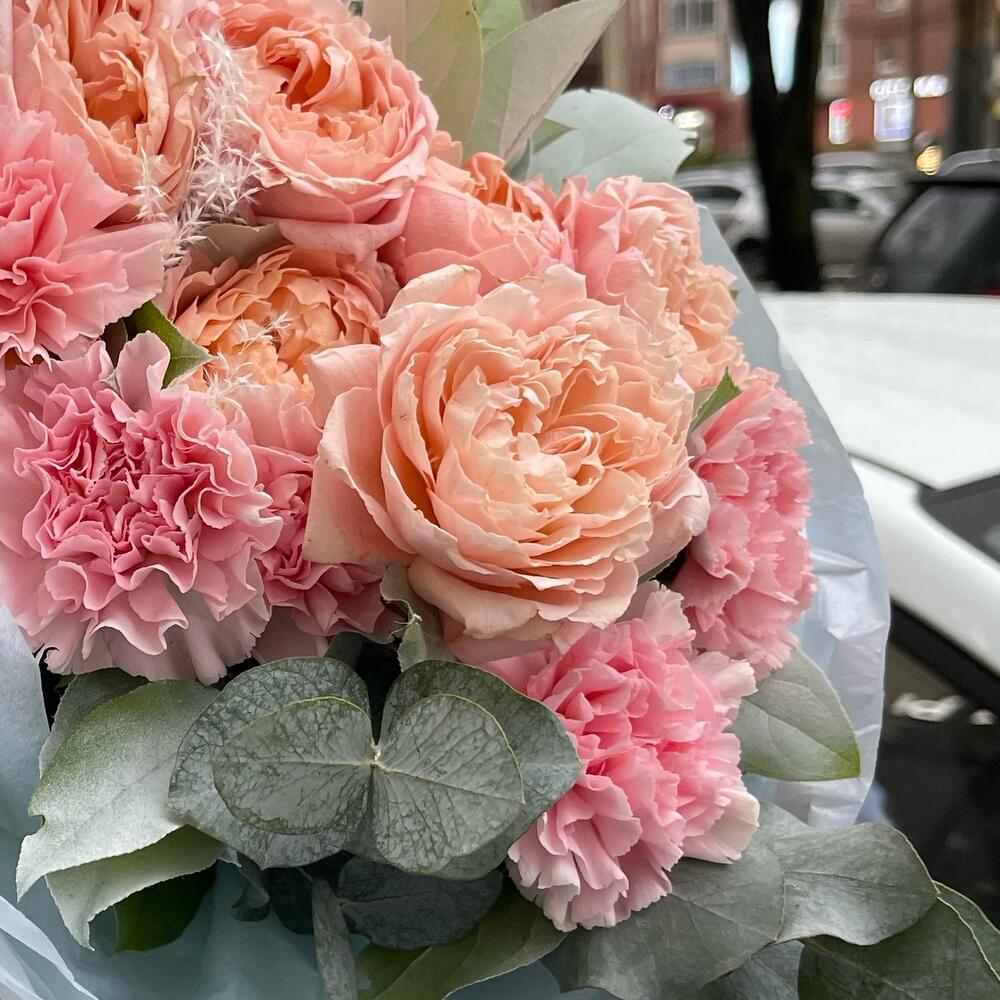 Категории: Гвоздики, Пионовидные розы, Розы, Сухоцвет