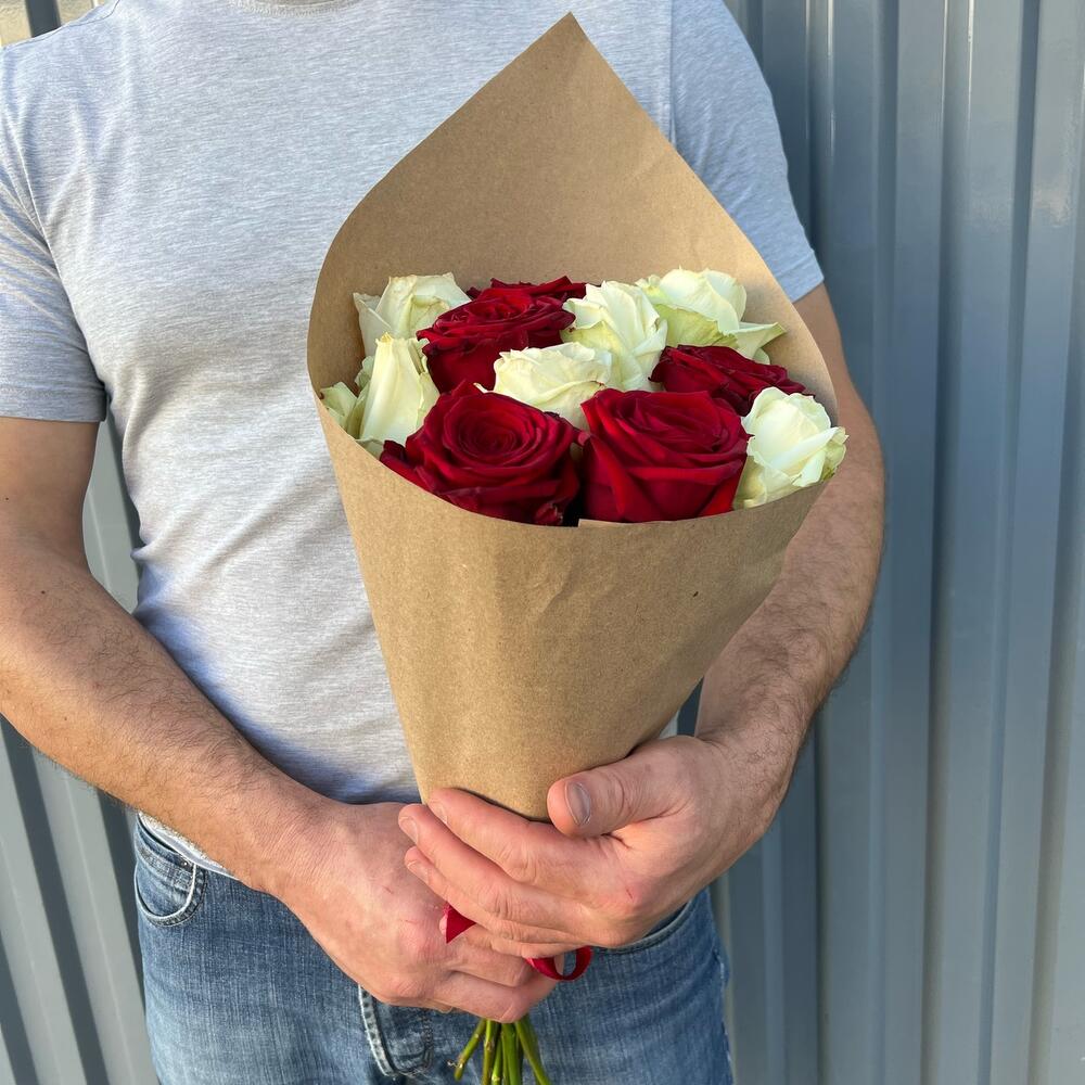 Роза красная 60 см – 5 шт.Роза белая 60 см – 6 шт.