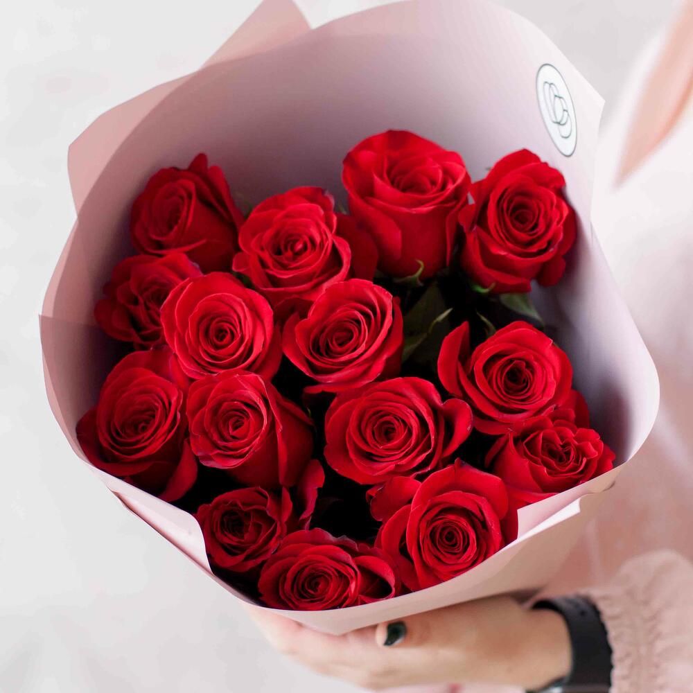 Букет из 15 красных роз 70см