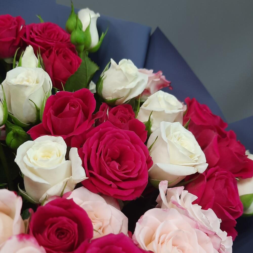Роза кустовая розовая – 5 шт.Роза кустовая белая – 5 шт.Упаковка дизайнерская – 2 шт.роза кустовая микс – 5 шт.