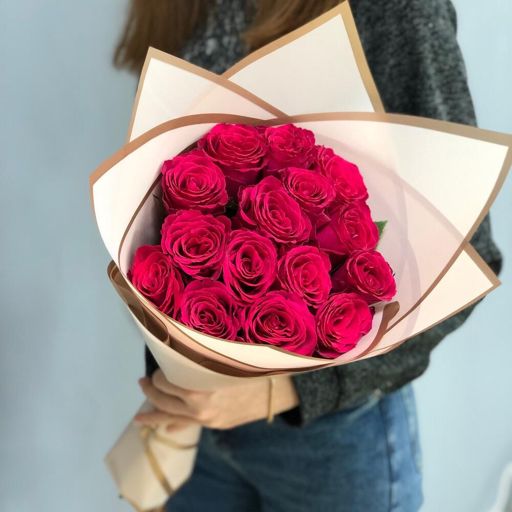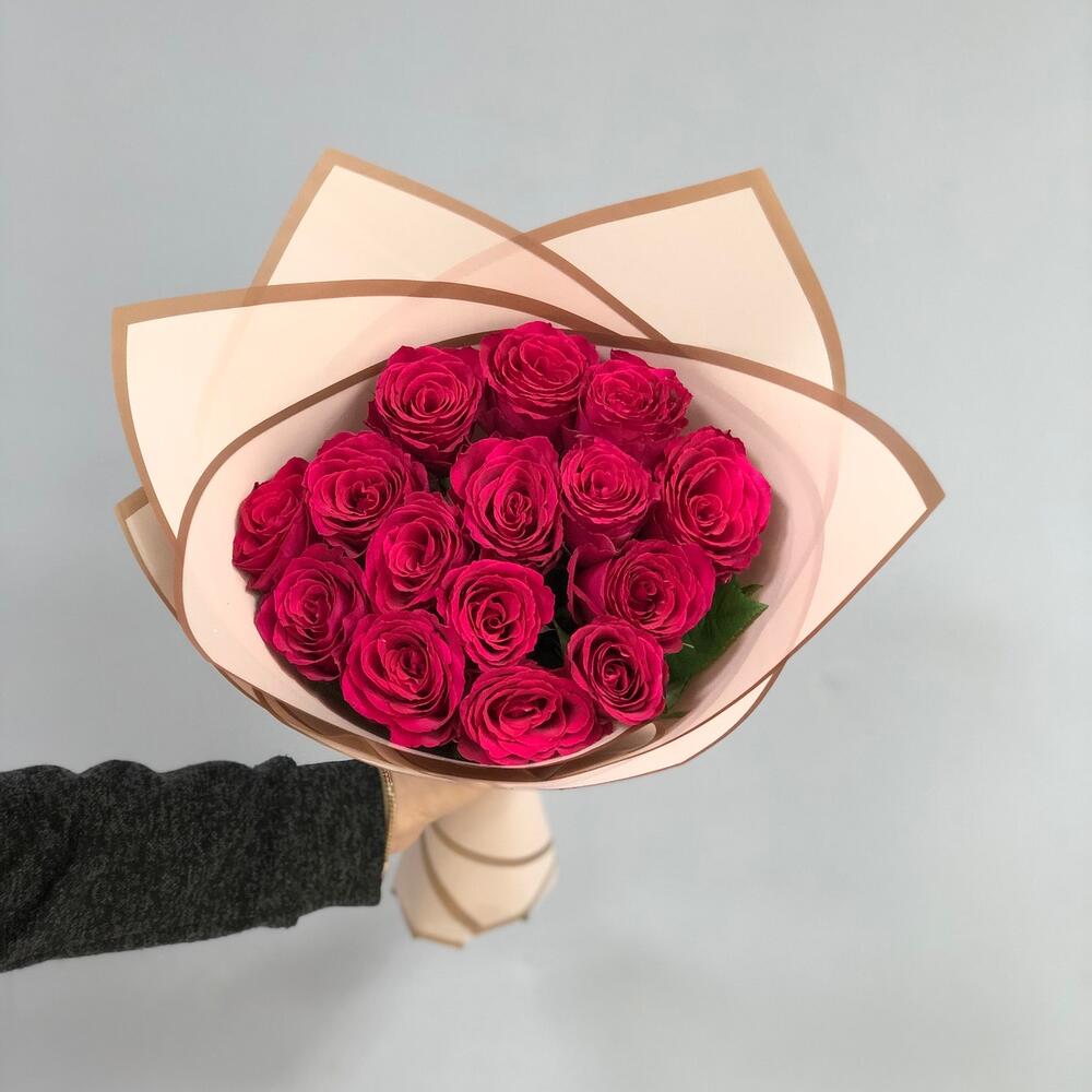Лента атласная – 1 шт.Матовая пленка – 1 шт.роза кения – 15 шт.