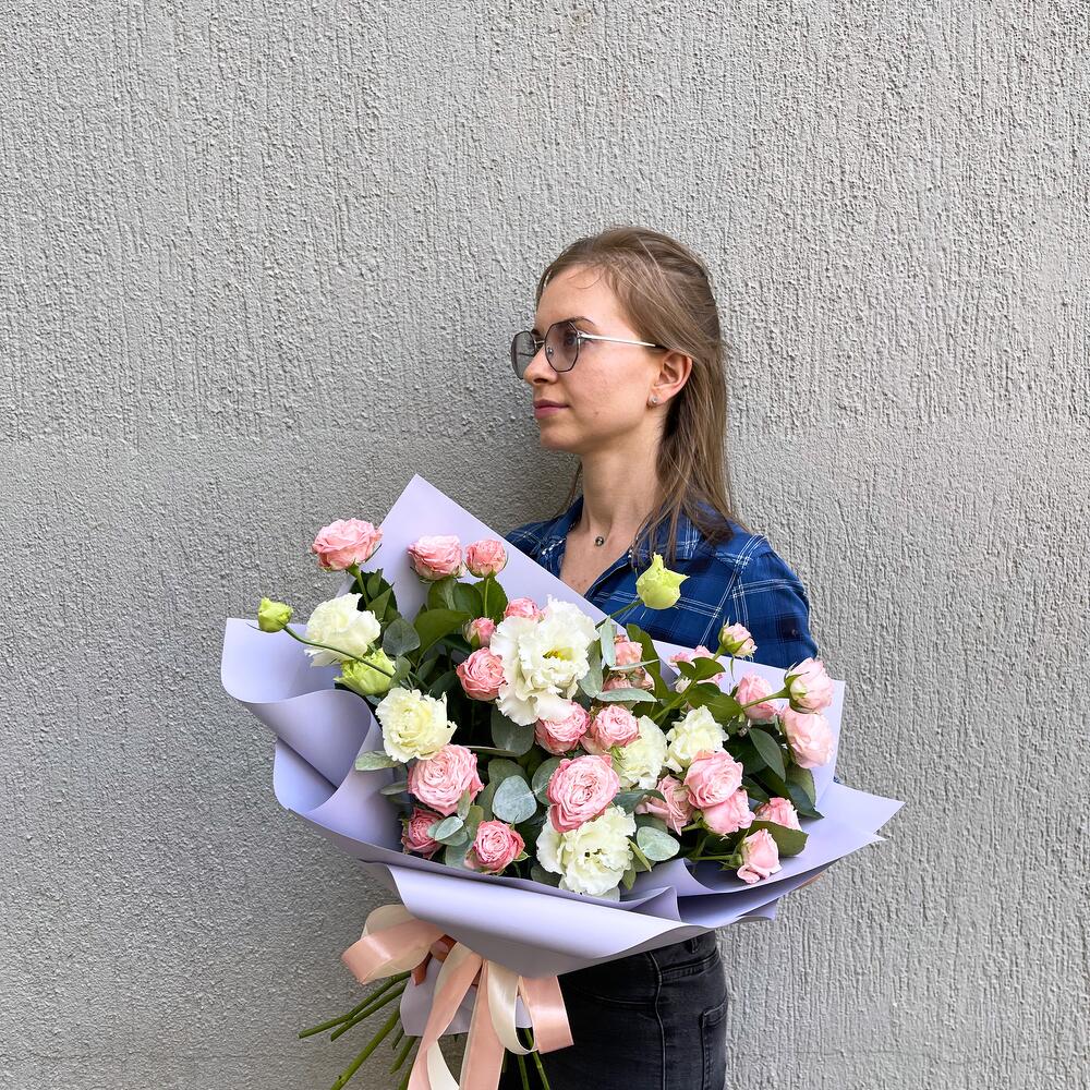 Представляем вам наш небольшой букет микс, который сочетает в себе нежную эустому и веточную розу. Этот букет – это нежный акцент к вашему дню, а бесплатная доставка по Тбилиси делает заказ особенно привлекательным.