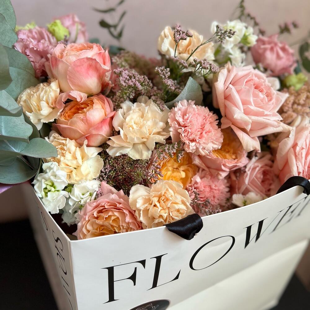 Категорий: Гвоздики, Кустовые розы, Лизиантусы, Пионовидные розы, Розы