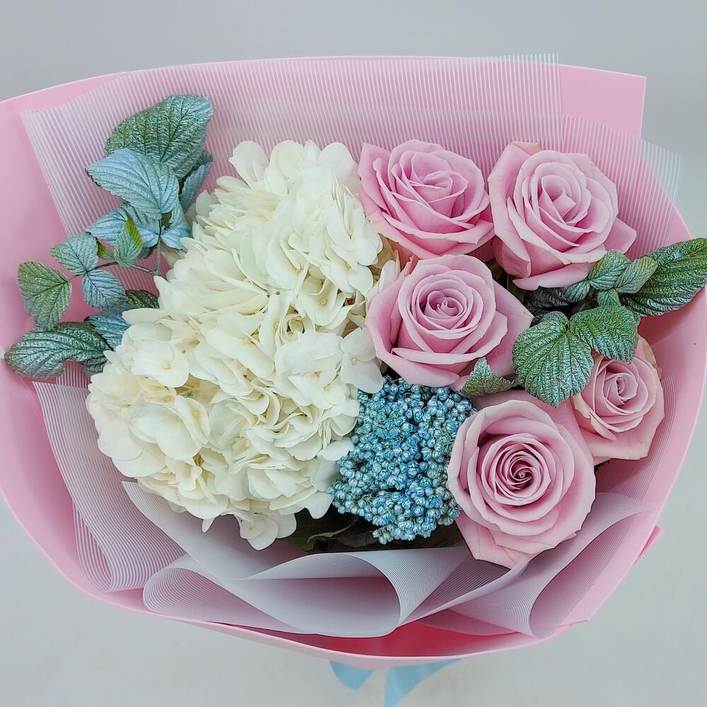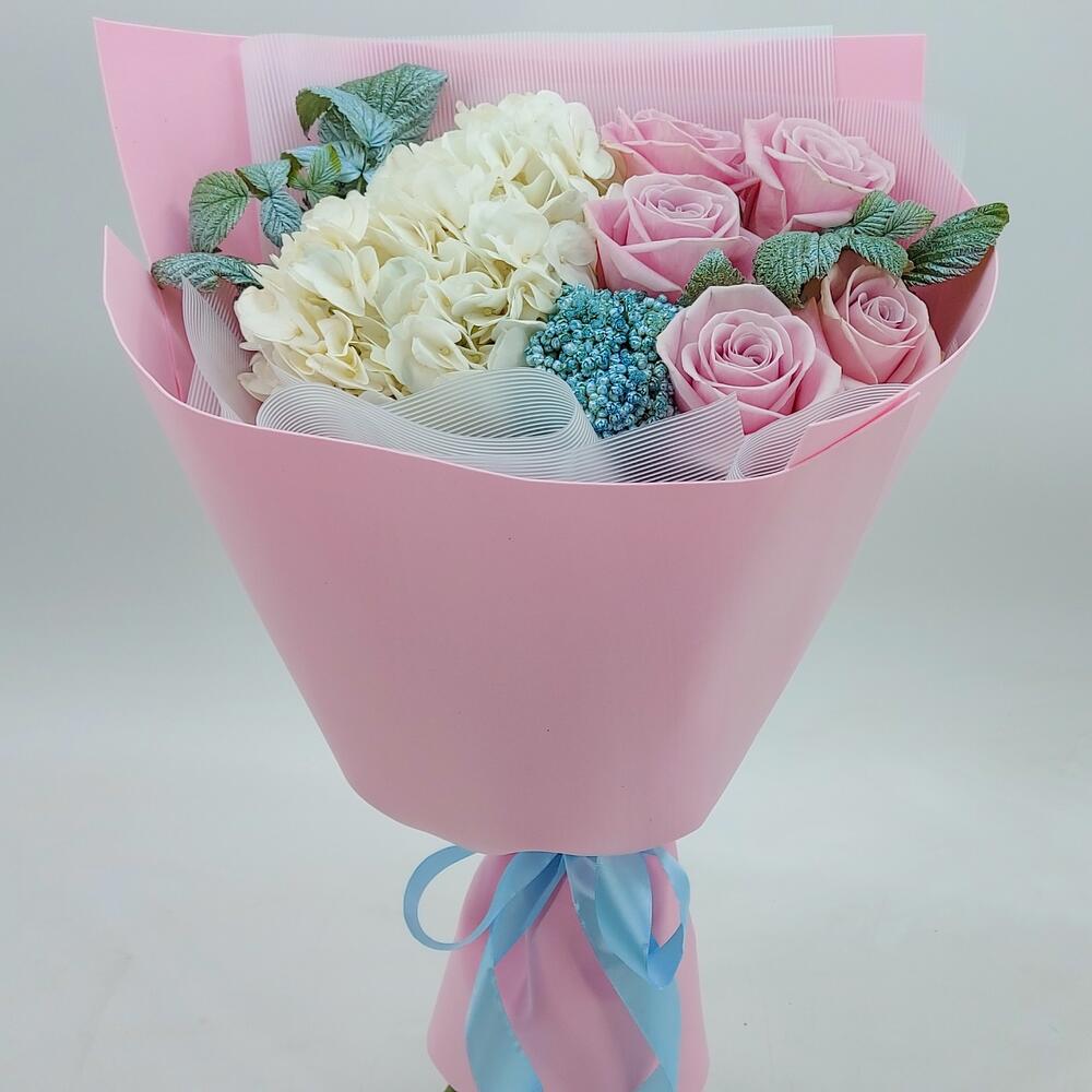 Букет с гортензией и розами «Янь»