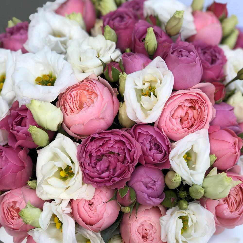 Коробка из пионовидных роз и эустомы!