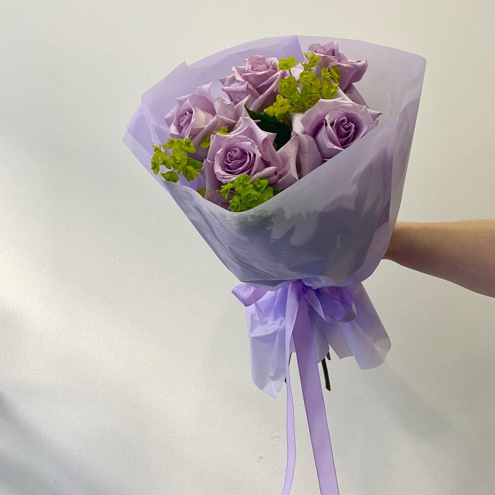 Роза французская – 5 шт.Буплерум – 5 шт.Упаковка дизайнерская – 1 шт.
