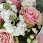 Нежный букет с розой «Бомбастик» и нежно-розовой эустомой