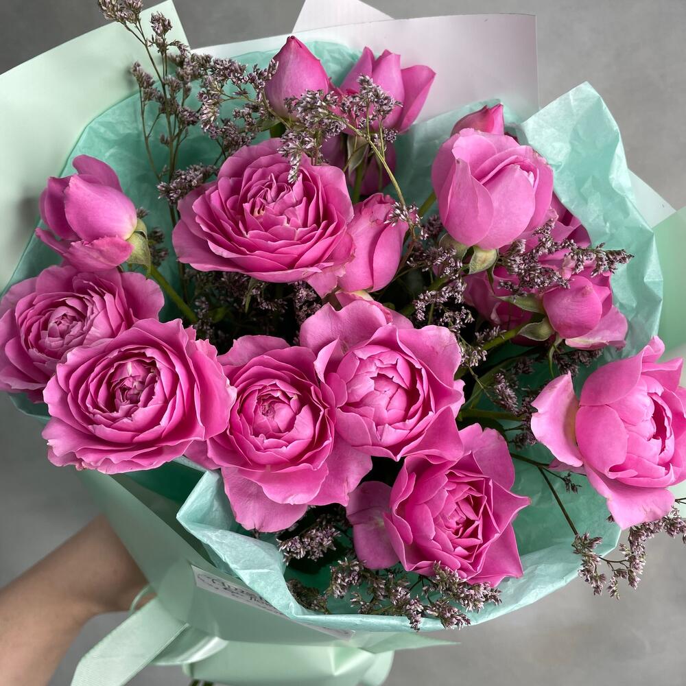Кустовые розы, Пионовидные розы, Розы, Сухоцвет, Тюльпаны