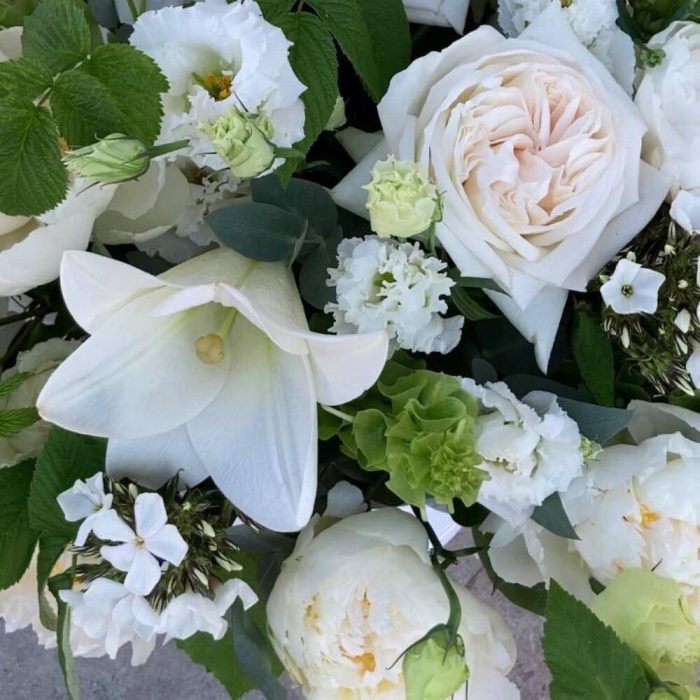 С чистого листа – Композиция с лилиями, пионовидными розами и пионами