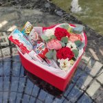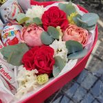 “Сладкое сердце ” – цветочная композиция с сладостями в коробке “Сердце”