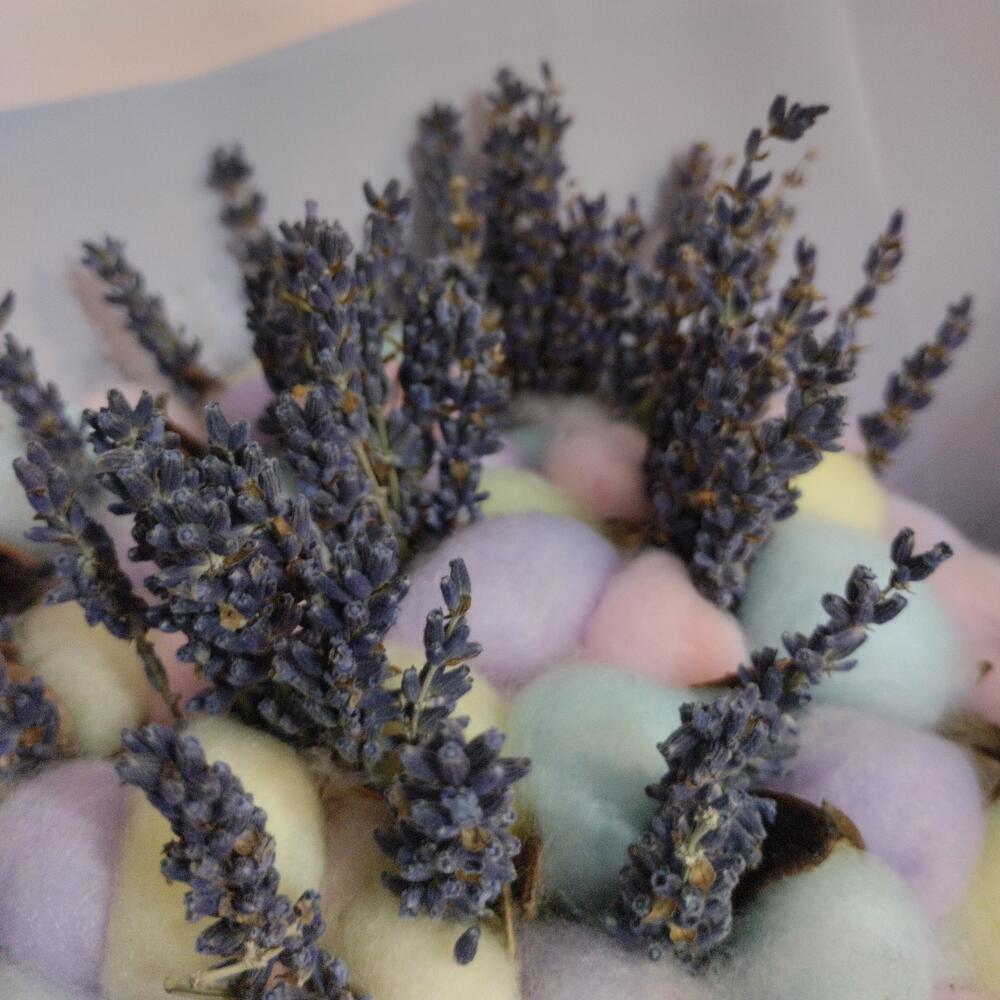 Хлопок – 11 шт.Лаванда – 50 шт.Бумага – 2 шт.Лента – 1 шт.