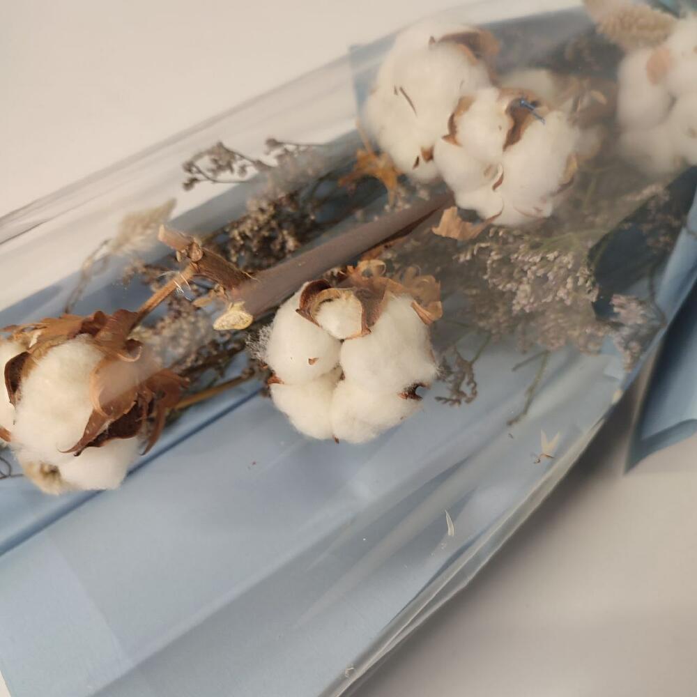 Хлопок – 1 шт.Лимониум – 3 шт.Сухоцвет – 1 шт.