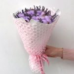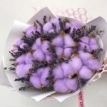 «Лавандовое созвездие» Букет из розы, гвоздики, статица и хлопка