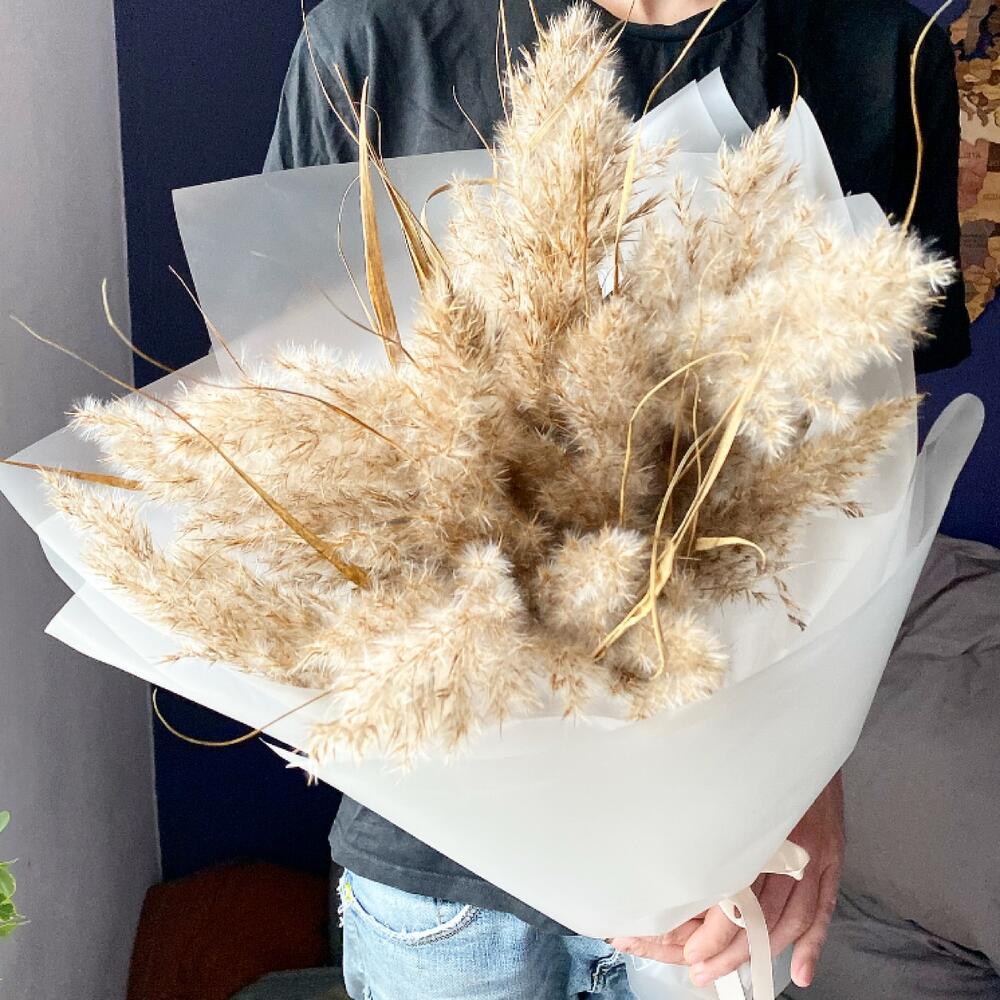 Сухоцветы – 15 шт.Матовая пленка – 5 шт.Лента атласная – 1 шт.
