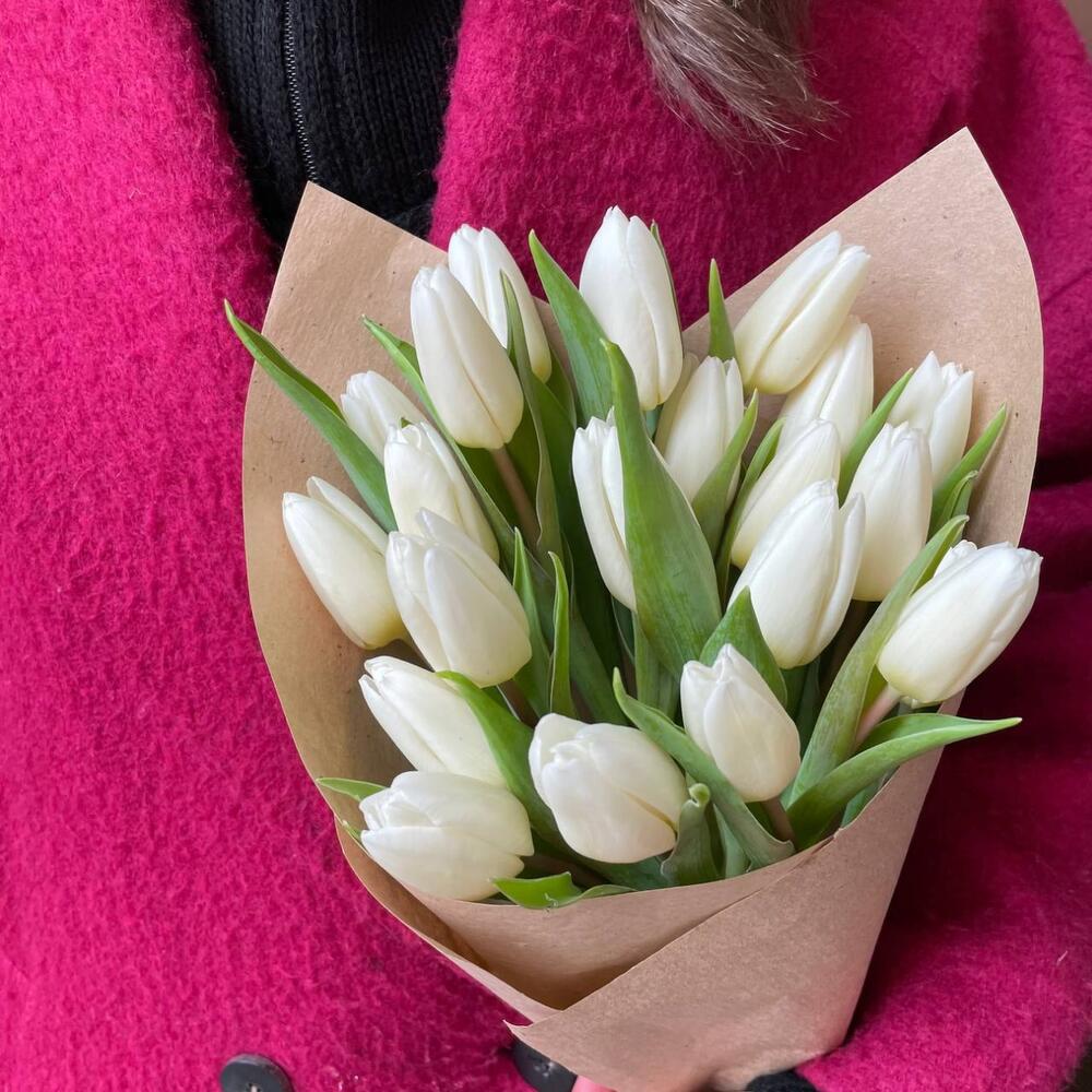 Крафтовая упаковка – 1 шт.Белый тюльпан – 21 шт.