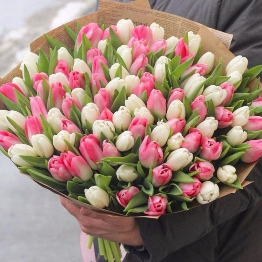 Букет из 101 тюльпана стандарт микс в стильной упаковке